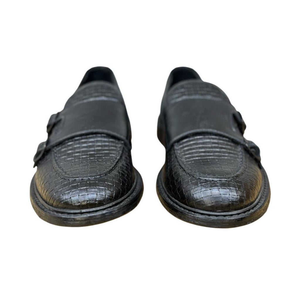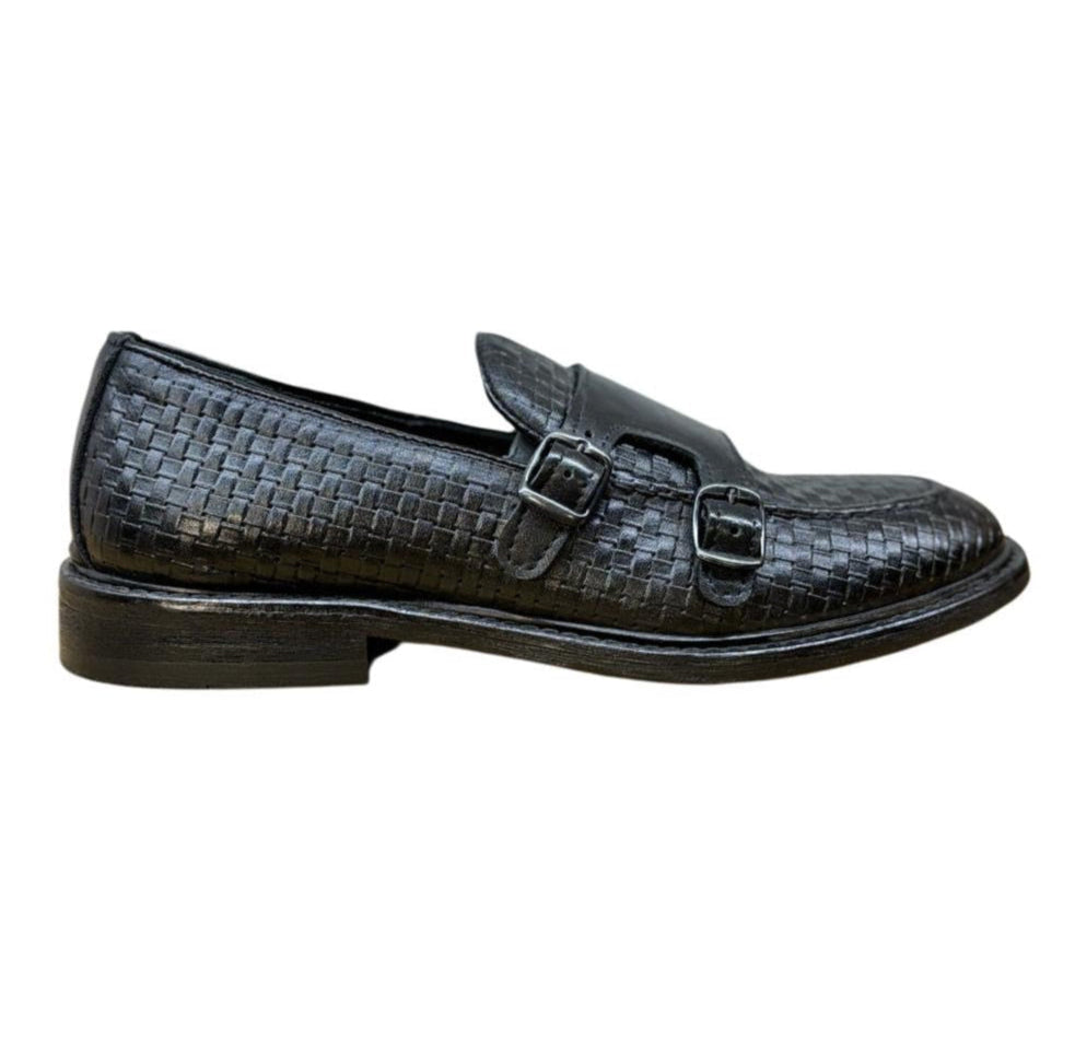 Mocassino in Pelle Stampata A Motivo Intrecciato con Doppia Fibbia e Fondo Cuoio