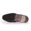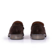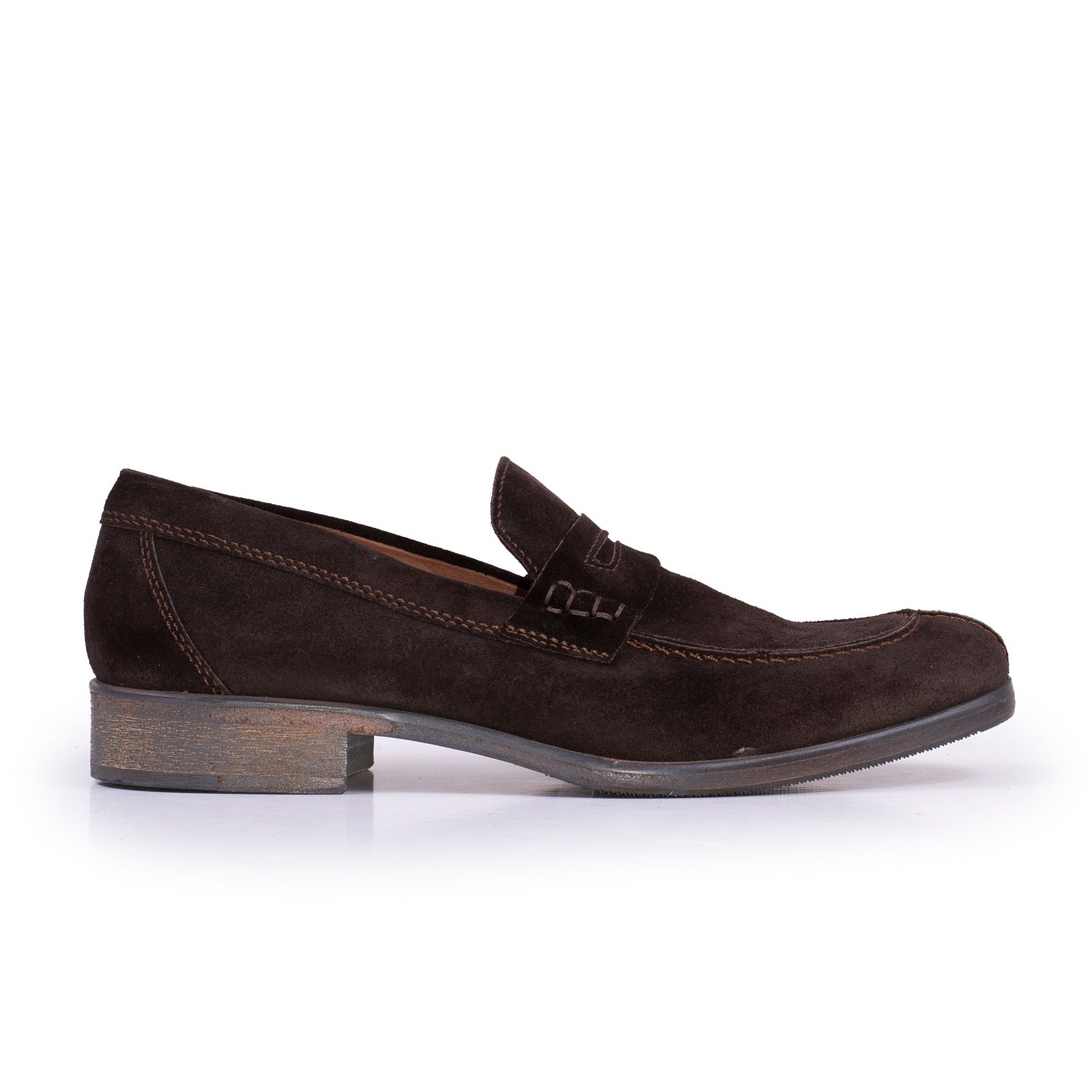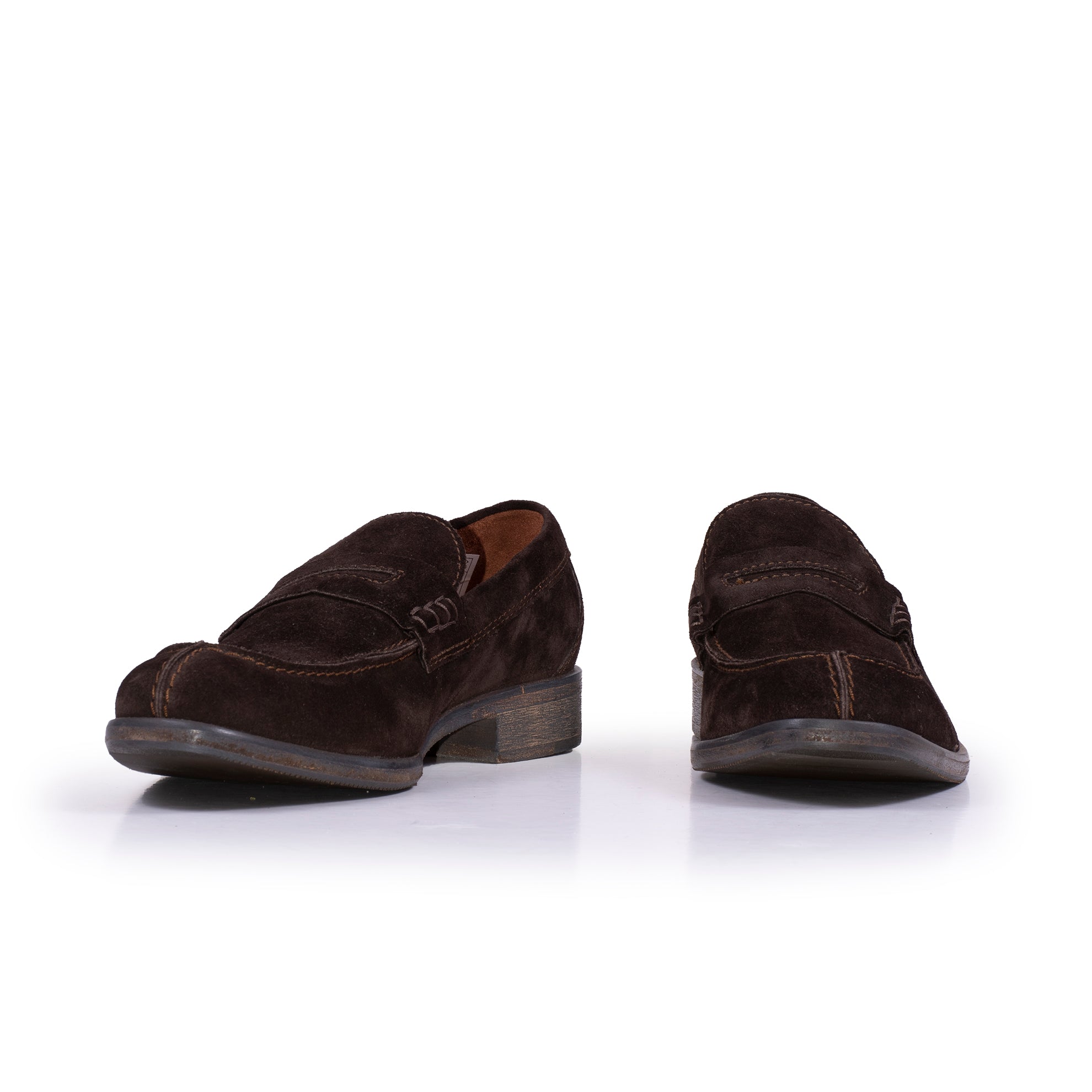 PLEASE WALK MOCASSINO in pelle scamosciata, punta arrotondata, fascia sulla patta, cuciture, suola e tacchetto in cuoio.