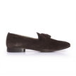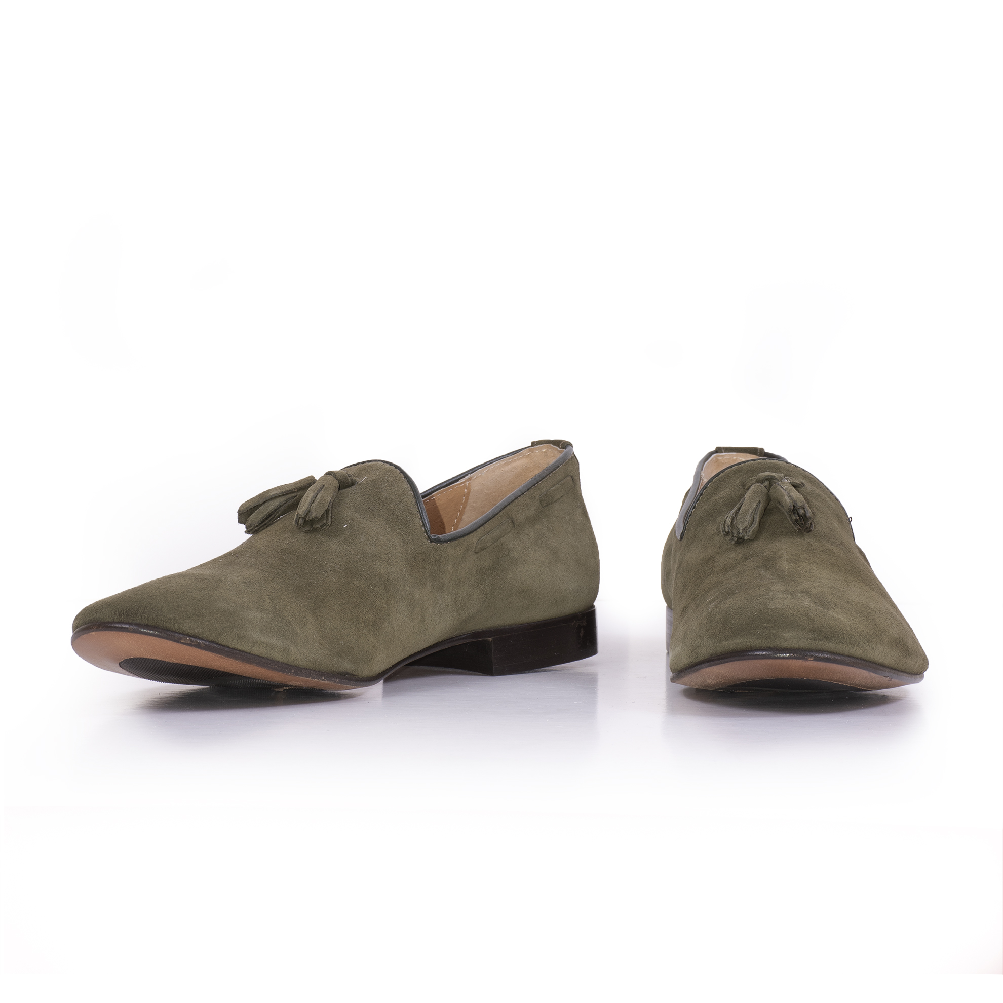 VDC MOCASSINO in pelle scamosciata con nappina sulla patta, design traforato, con suola in vero cuoio, antiscivolo.