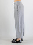 PENNYBLACK PANTALONE modello a carrettiera grigio rigato con risvolto. Pantaloni gessati grigio melange in misto viscosa stretch, chiusura con gancio e zip nascosti, tasche alla carrettiera, piega stirata davanti e dietro, risvolto al fondo, linea a sigaretta