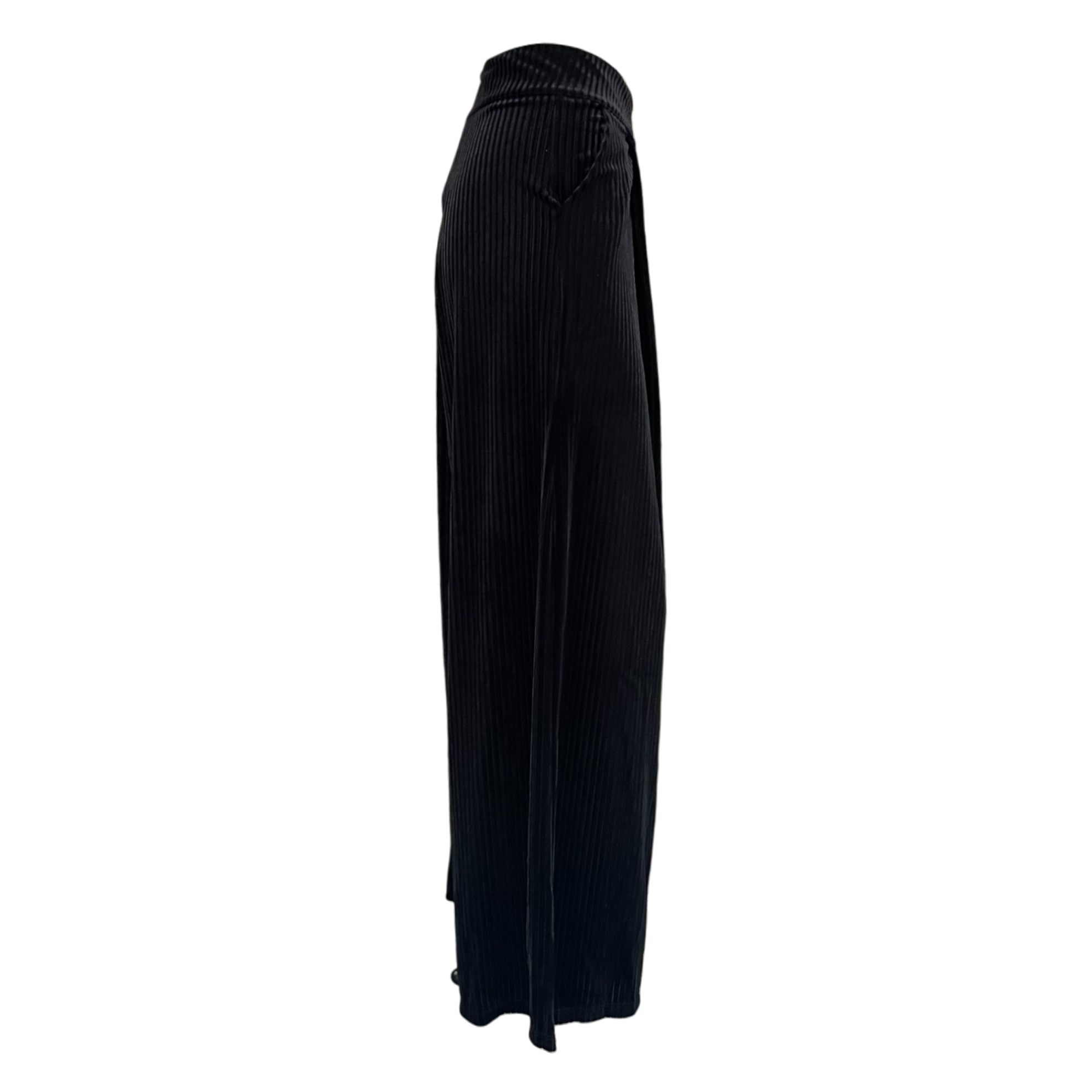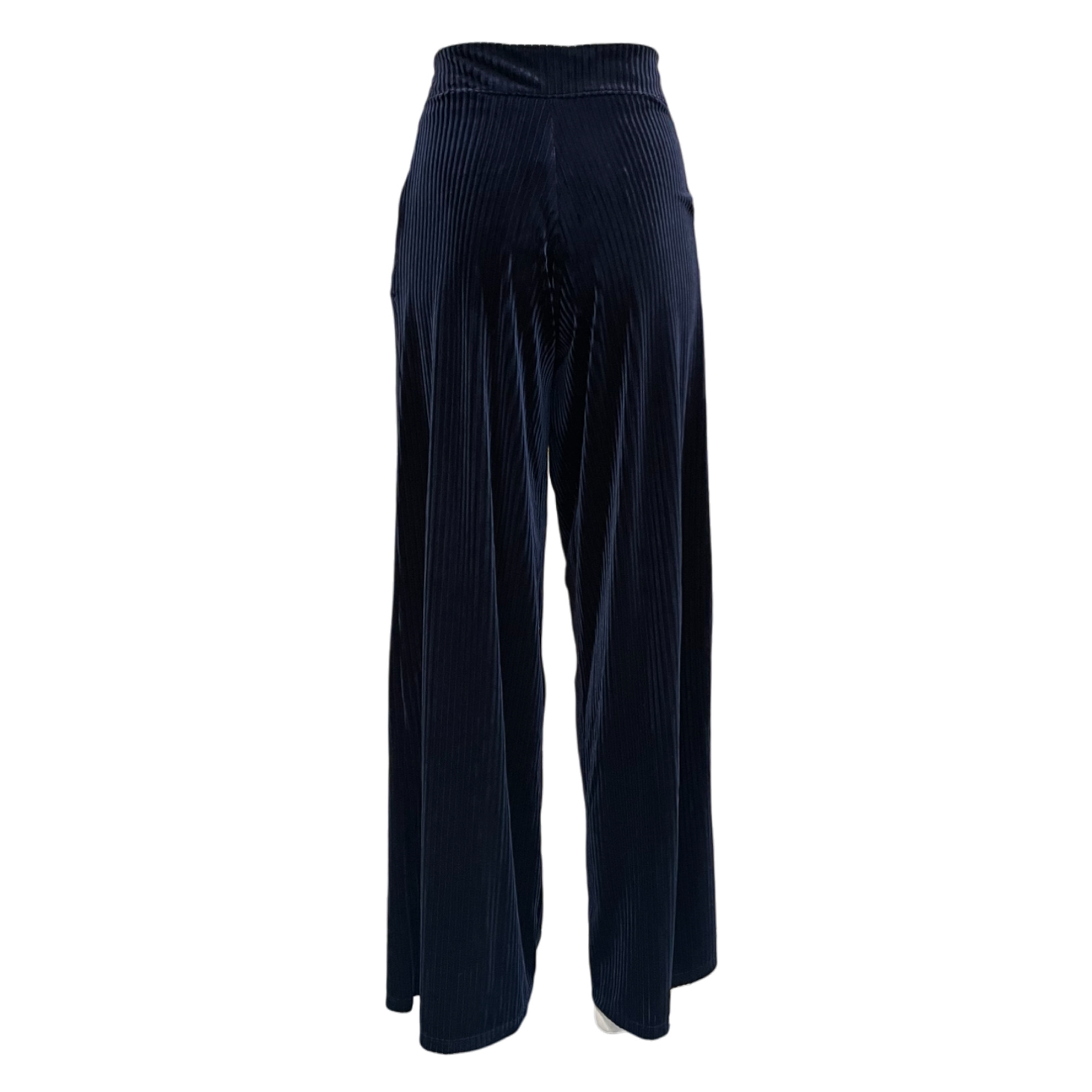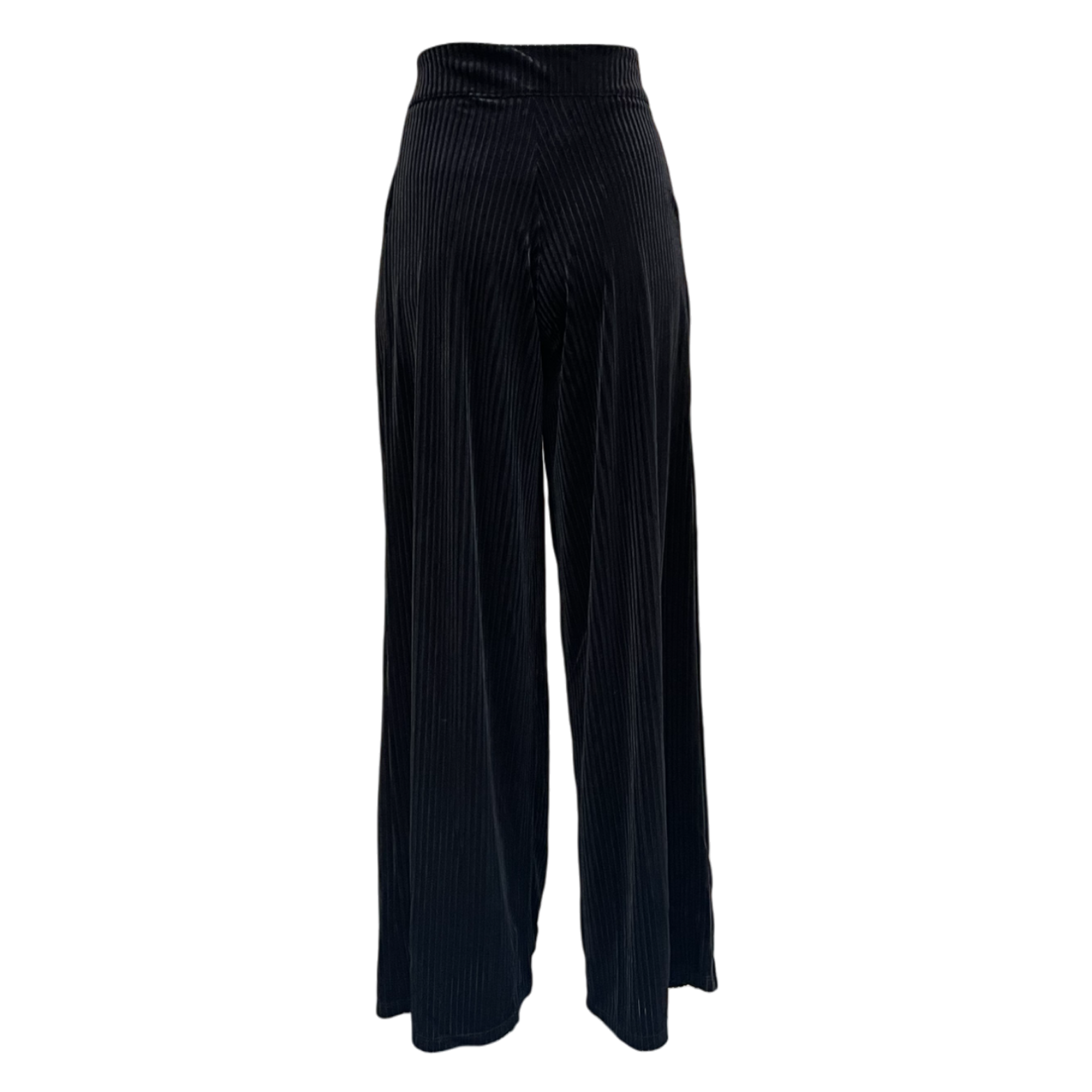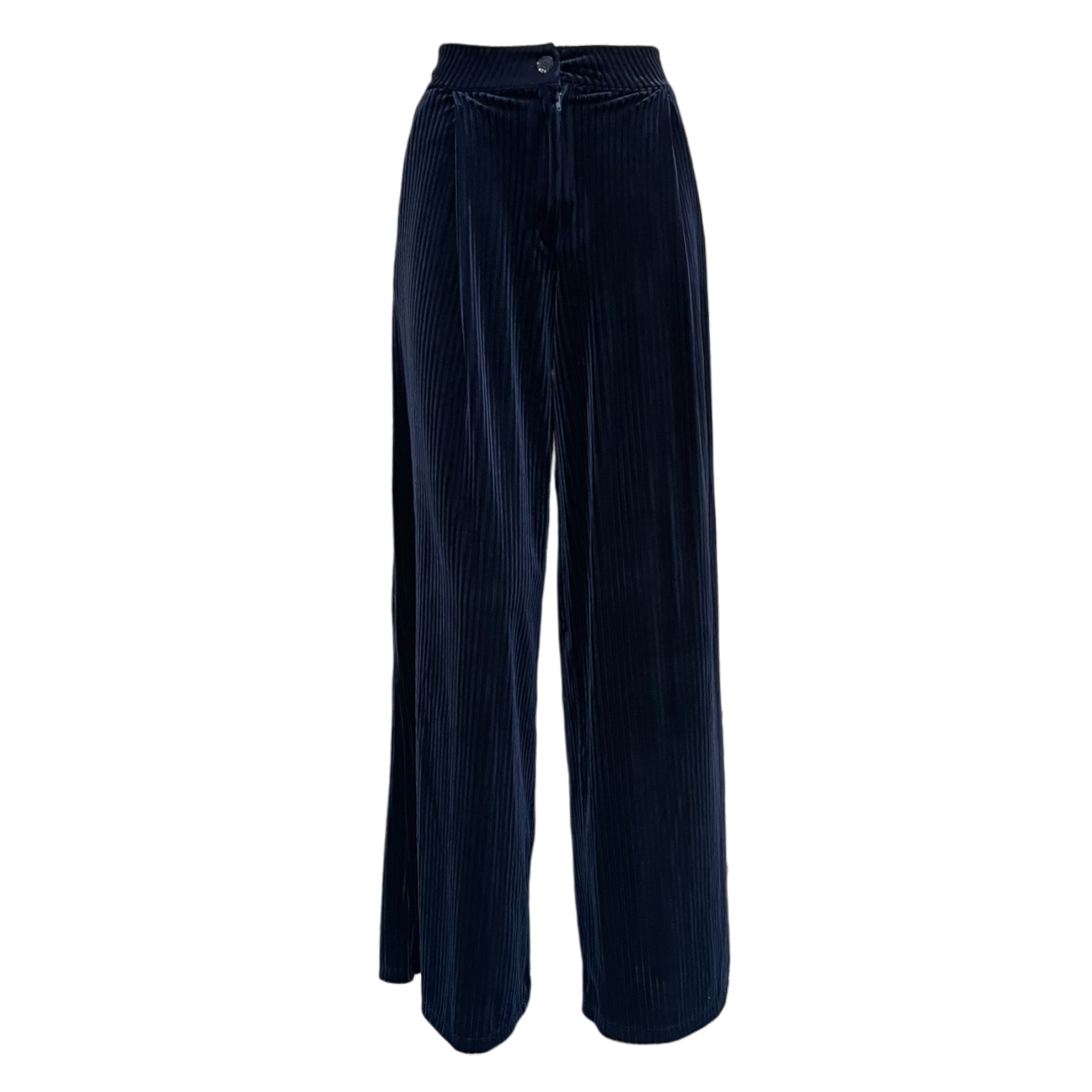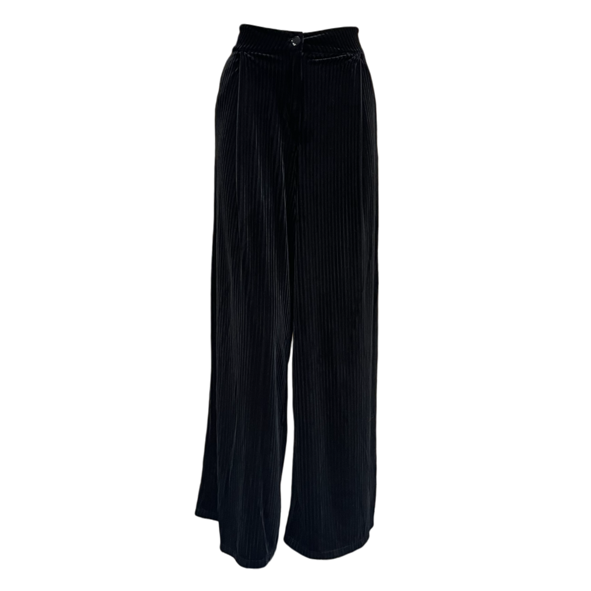 LA RIGA PANTALONE a palazzo in velluto a costine, con chiusura con zip e bottone e due tasche laterali a filo. Disponibile in diversi colori. Un mix tra eleganza e comfort. Indossalo per un evento serale con un tacco alto.
