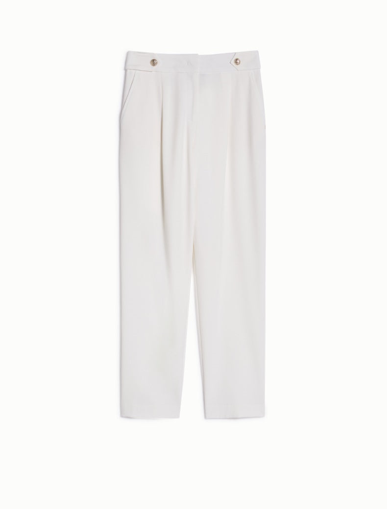 PENNYBLACK PANTALONE carrot fit in tela bi-stretch. Hanno un taglio morbido con le pinces sul davanti e la gamba affusolata. Vita regolare con inserto elastico sul retro e cinturini con bottoni navy sul davanti, chiusura nascosta con zip.