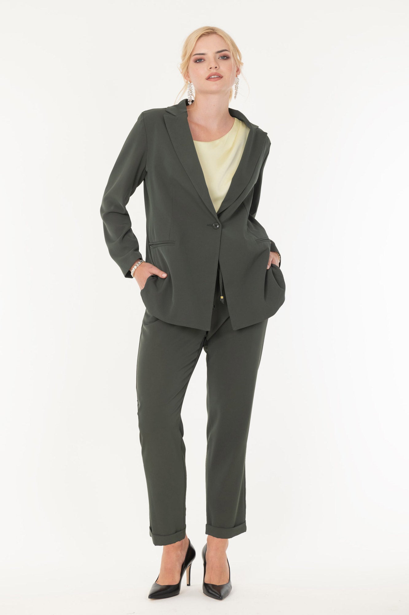MORE PANTALONE da donna con coulisse, laccio in vita, tasche laterali e risvolti. Indossa questo pantalone dal design sport chic con una t-shirt e un paio di sneakers.