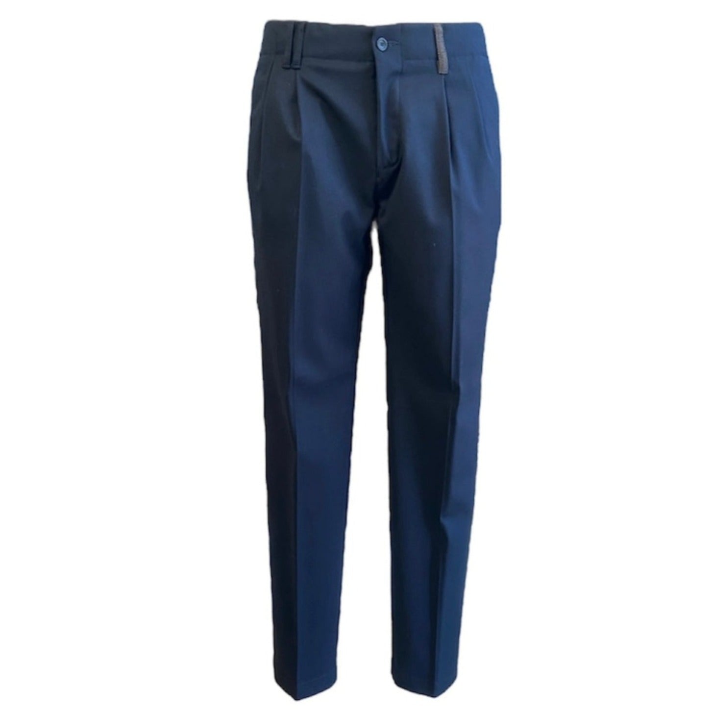 ALESSANDRINI PANTALONE classico in un elegante colore blu. Perfetto per le occasioni formali, si abbina bene con una camicia a contrasto o tono su tono, a seconda delle preferenze. Con il suo design senza tempo e le opzioni versatili, questo pantalone è un must per ogni guardaroba.