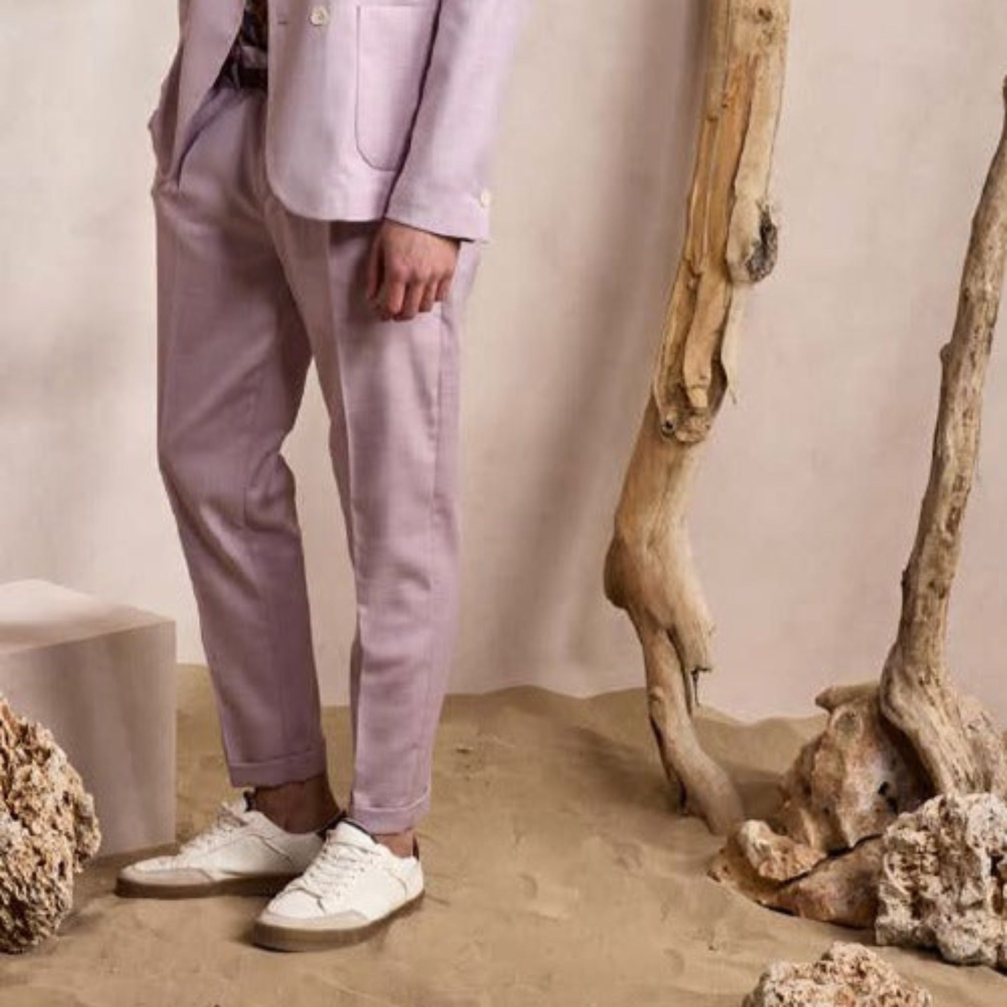 Pantalone uomo con pences frontali, tasche laterali, chiusura con zip e bottone, risvolti finali. Indossalo con la giacca coordinata per un look completo e alla moda.