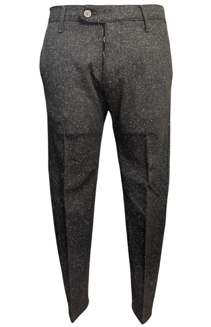 DIRTYPAGE PANTALONE casual realizzato in un tessuto micro fantasia bianca su fondo nero. Perfetto per le occasioni formali, si abbina bene con una camicia a contrasto o tono su tono, a seconda delle preferenze. Con il suo design senza tempo e le opzioni versatili, questo pantalone è un must per ogni guardaroba.