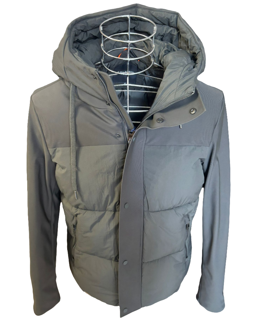 TALENTI GIUBBOTTO UOMO Softy Shell modello corto con chiusura a zip in metallo e bottoni clips, cappuccio maniche e parte superiore i tessuto tecnico.