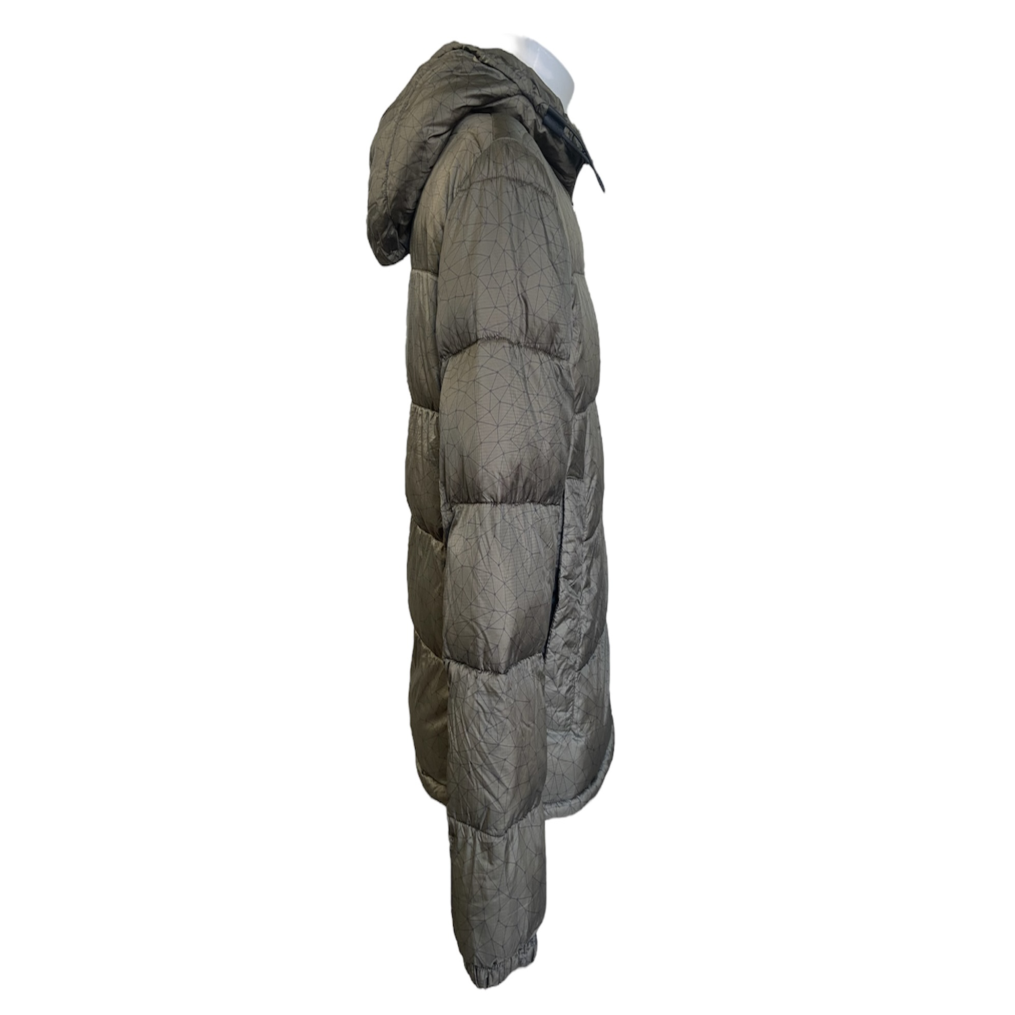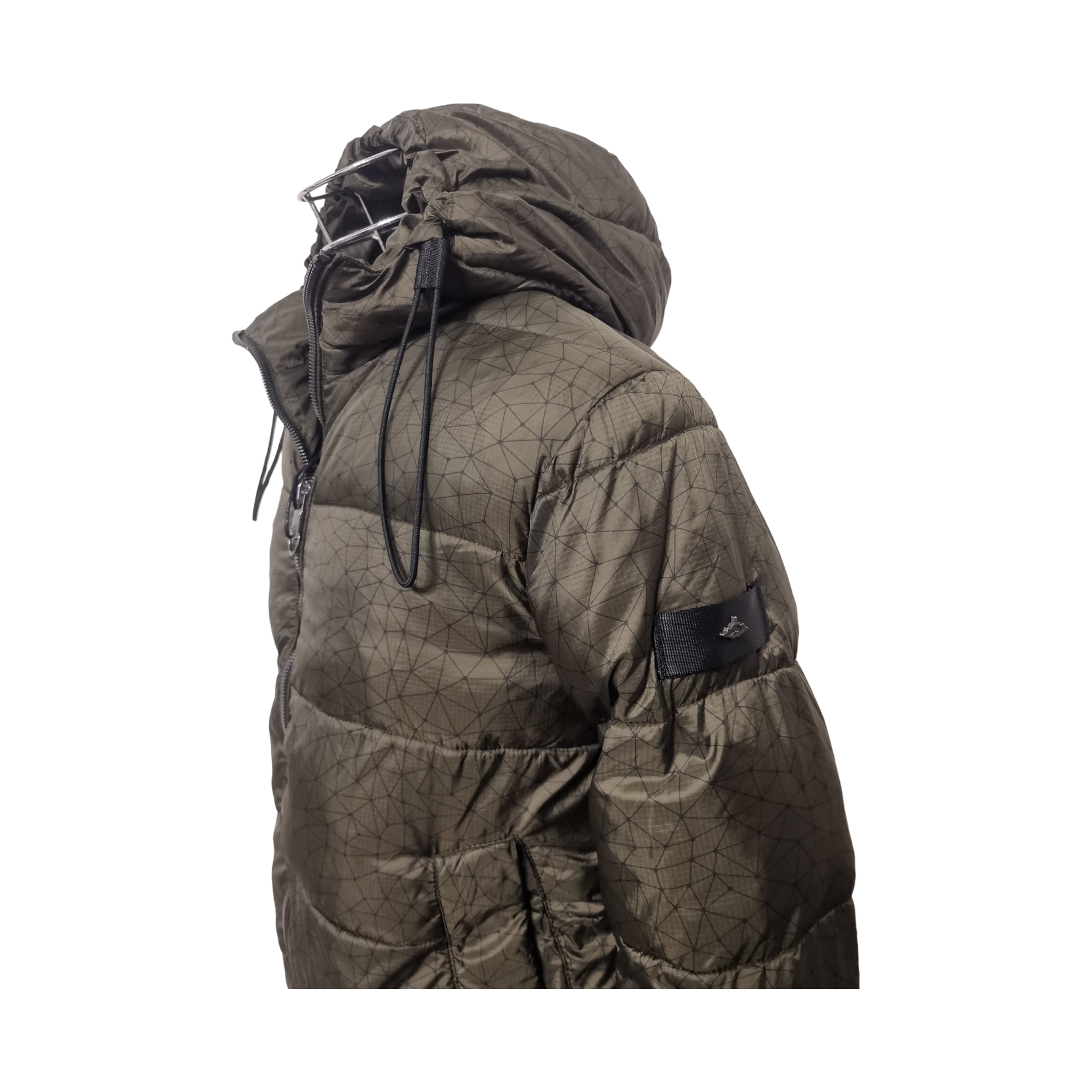 LONDINESE PIUMINO corto imbottito con cappuccio. Realizzato in un raffinato verde oliva con motivo in nero. Questo piumino presenta un design alla moda e chic, quindi avvolgiti nel lusso e nell'esclusività durante i mesi invernali più freddi.