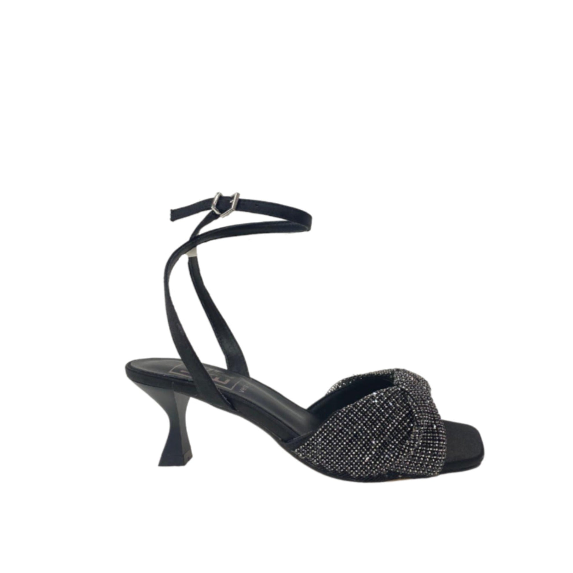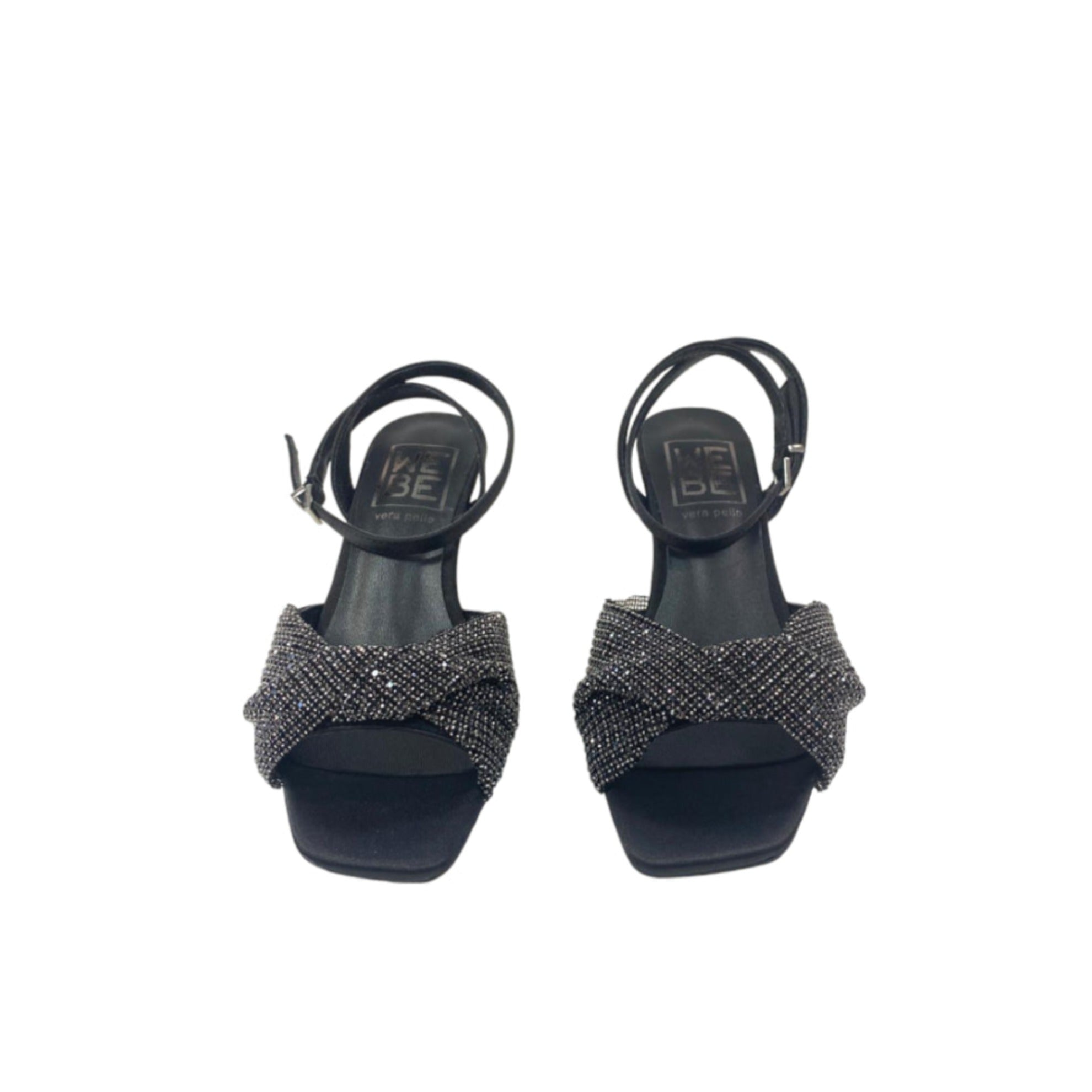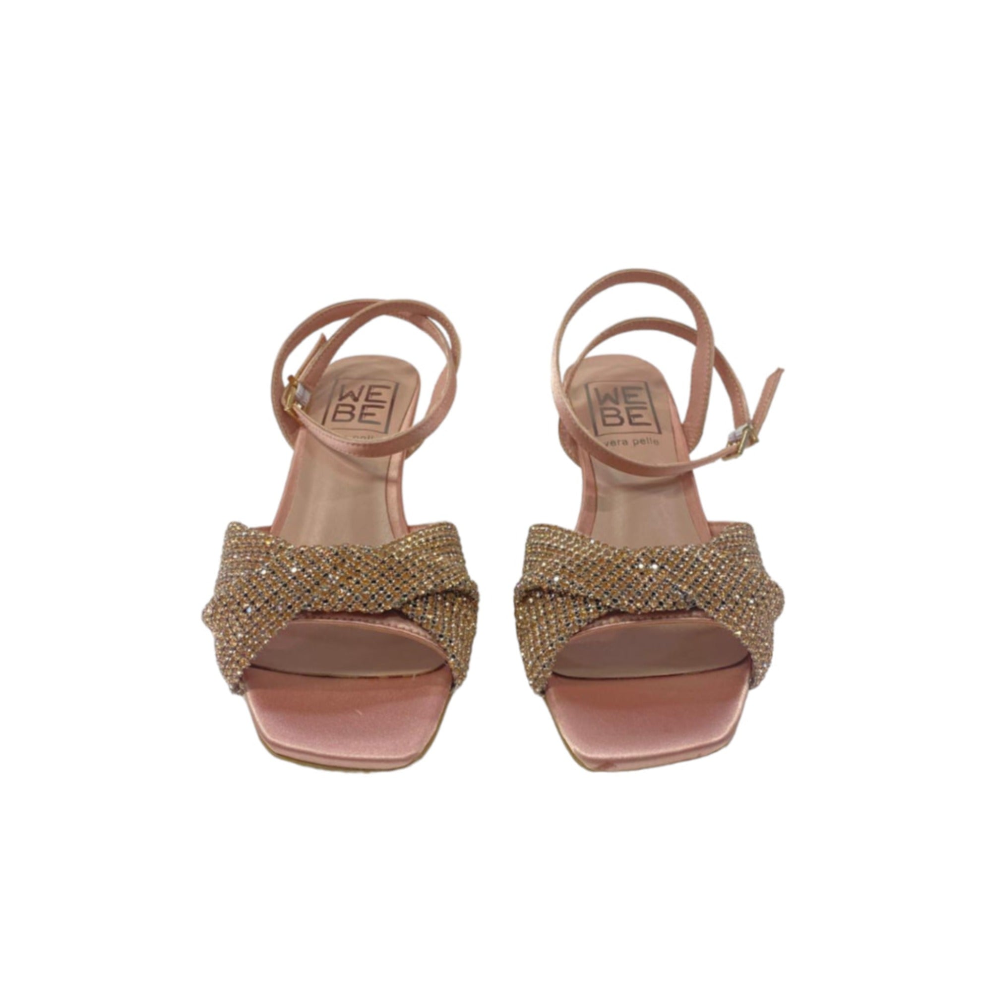 WEBE SANDALO aperto con tacco basso, cinturino, strass sulla fascia ad incrocio. Disponibile in due varianti.
