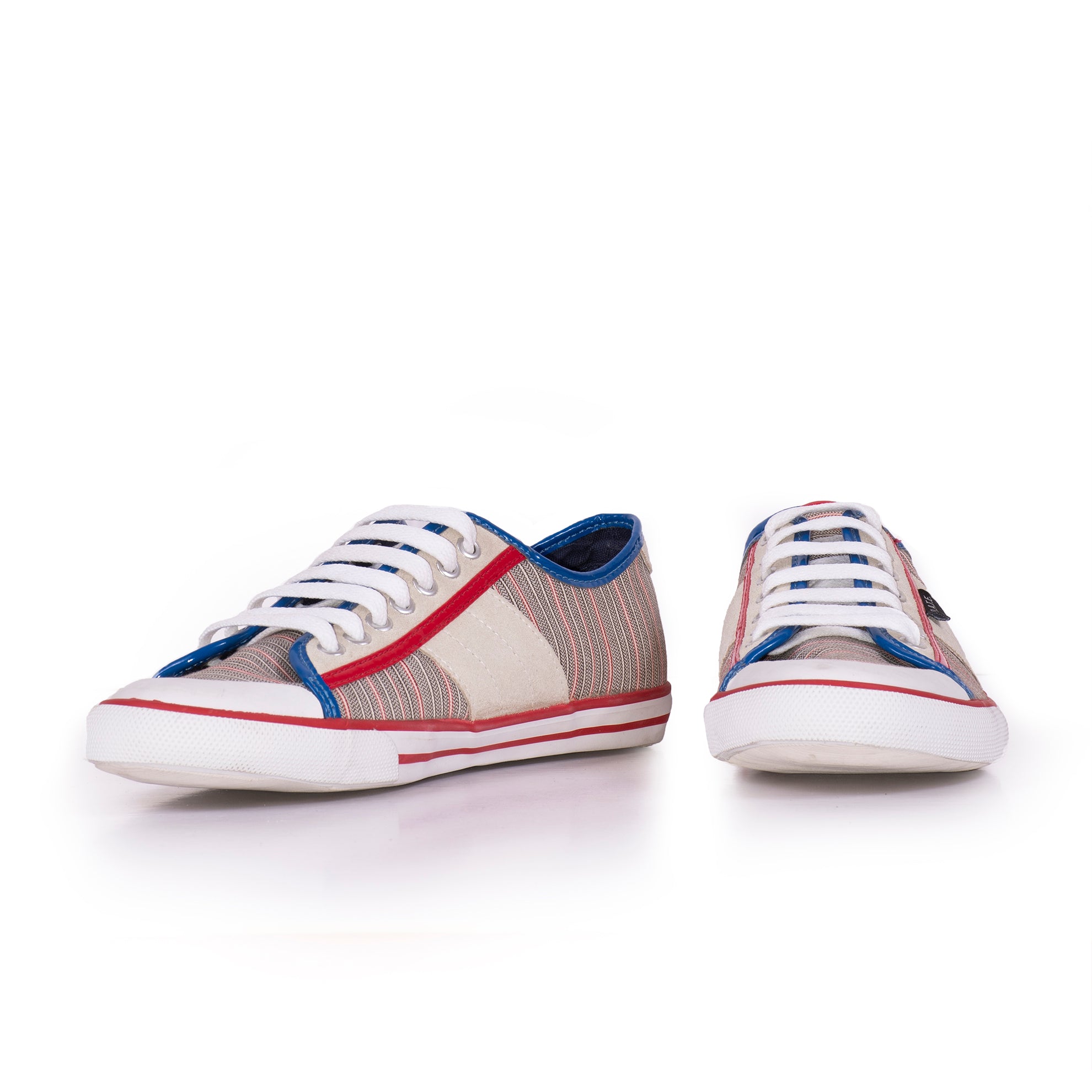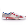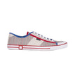 DATE SNEAKERS modello converse basso, a fantasia blu e rossa che riprende le cuciture. Realizzate con una suola in gomma resistente, sono ideali per lunghe passeggiate. Abbinale ad un jeans per mantenere il tuo look disinvoltamente cool.