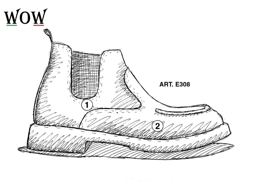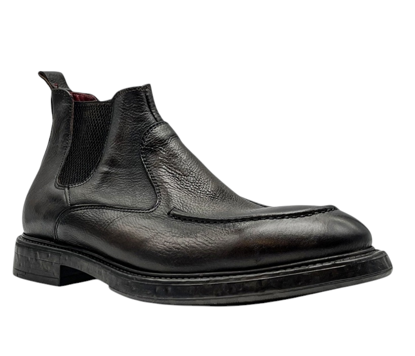 WOW SHOES STIVALETTO mezzo collo in pelle moro effetto crust spazzolato, stile vintage, con elastici bilaterali e suola martellata in gomma.