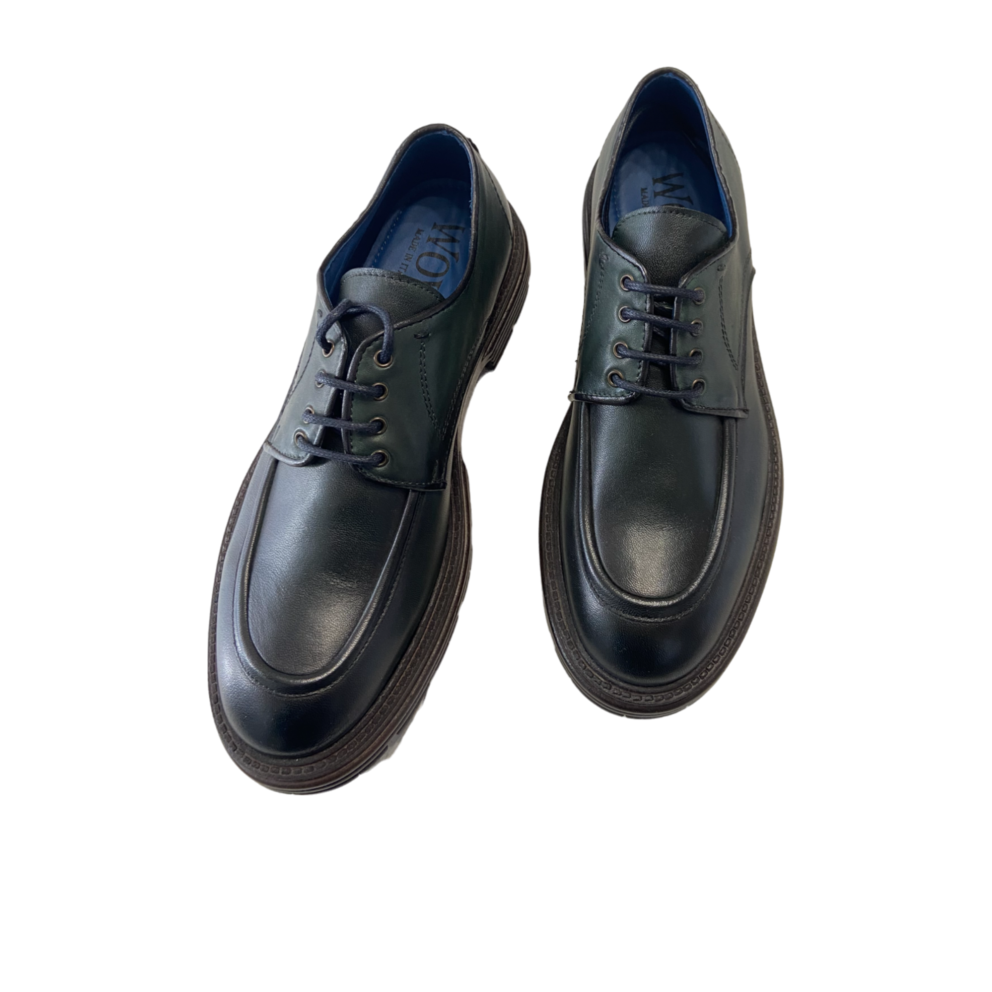 WOW STRINGATA modello derby, realizzate in pelle di alta qualità. Queste scarpe sono disponibili in una splendida tonalità verde con lacci blu. Inoltre, sono progettate con una doppia suola in gomma per la massima resistenza. Goditi un'esperienza calzaturiera davvero elevata e che dura nel tempo.