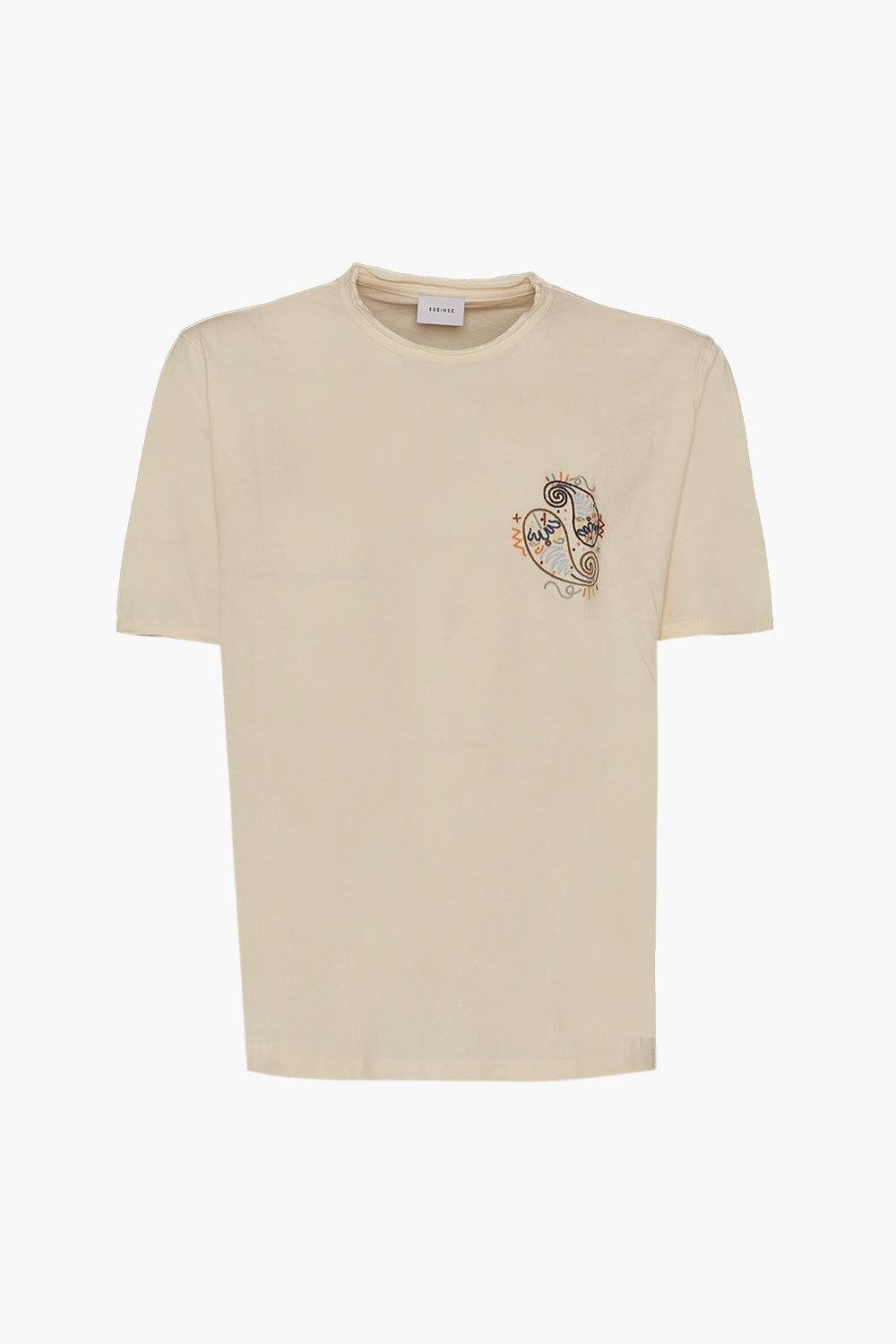 SSEINSE T-SHIRT da uomo a mezza manica con scollo rotondo e stampa ricamata. Fresca e versatile, abbinala ad un jeans per un look giornaliero.