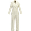 EMME MARELLA TAILLEUR Esprimi il tuo stile più deciso con questa giacca in fantasia gessata, perfetta per un look sofisticato e professionale. Realizzata in stuoia light, presenta un fit femminile che esalta la silhouette, con uno scollo con rever ampio e una chiusura doppiopetto con bottoni eleganti. Le pince e i fianchetti sagomati, insieme alle tasche laterali a filetto, aggiungono un tocco di classe e praticità. Il modello è completamente foderato per garantire una vestibilità comoda e fluida.