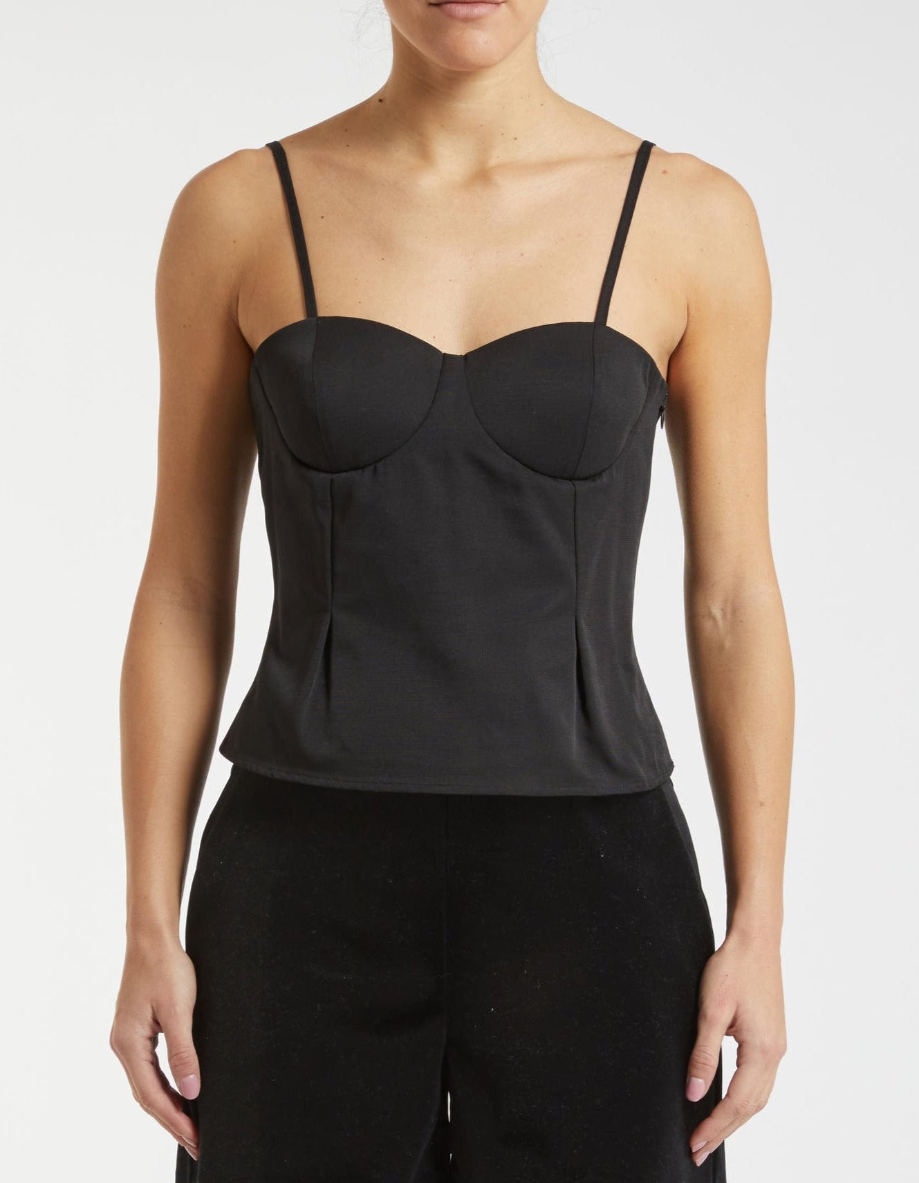 PENNYBLACK TOP a bustier di faille in blend di cotone. Ha un taglio aderente con pieghe al busto che creano linee svasate al fondo, spalline sottili e scollo con motivo a cuore sul davanti. Zip invisibile, sfoderato. Si abbina alla gonna e ai pantaloni coordinati.