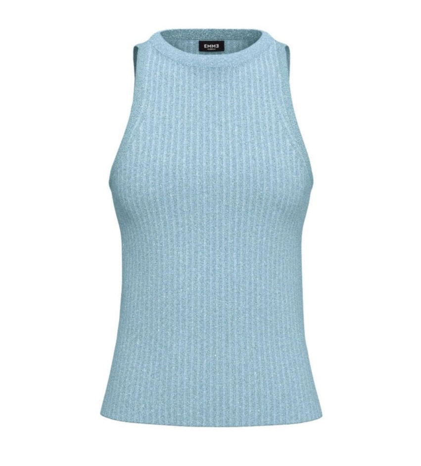 EMME MARELLA TOP satinato, senza maniche, con collo rotondo. Caratterizzato da una vestibilità aderente, è perfetto come sotto giacca o da indossare da solo in una calda giornata estiva.