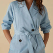 EMME MARELLA TRENCH in gabardine con impunture e cintura coordinata a definire la silhouette. Caratterizzato da una linea dritta, collo a rever, maniche raglan lunghe, chiusura a doppiopetto, tasche a filetto e spacco centrale sul retro. Questo trench è perfetto per un look da giorno per dare il benvenuto alla stagione primaverile.