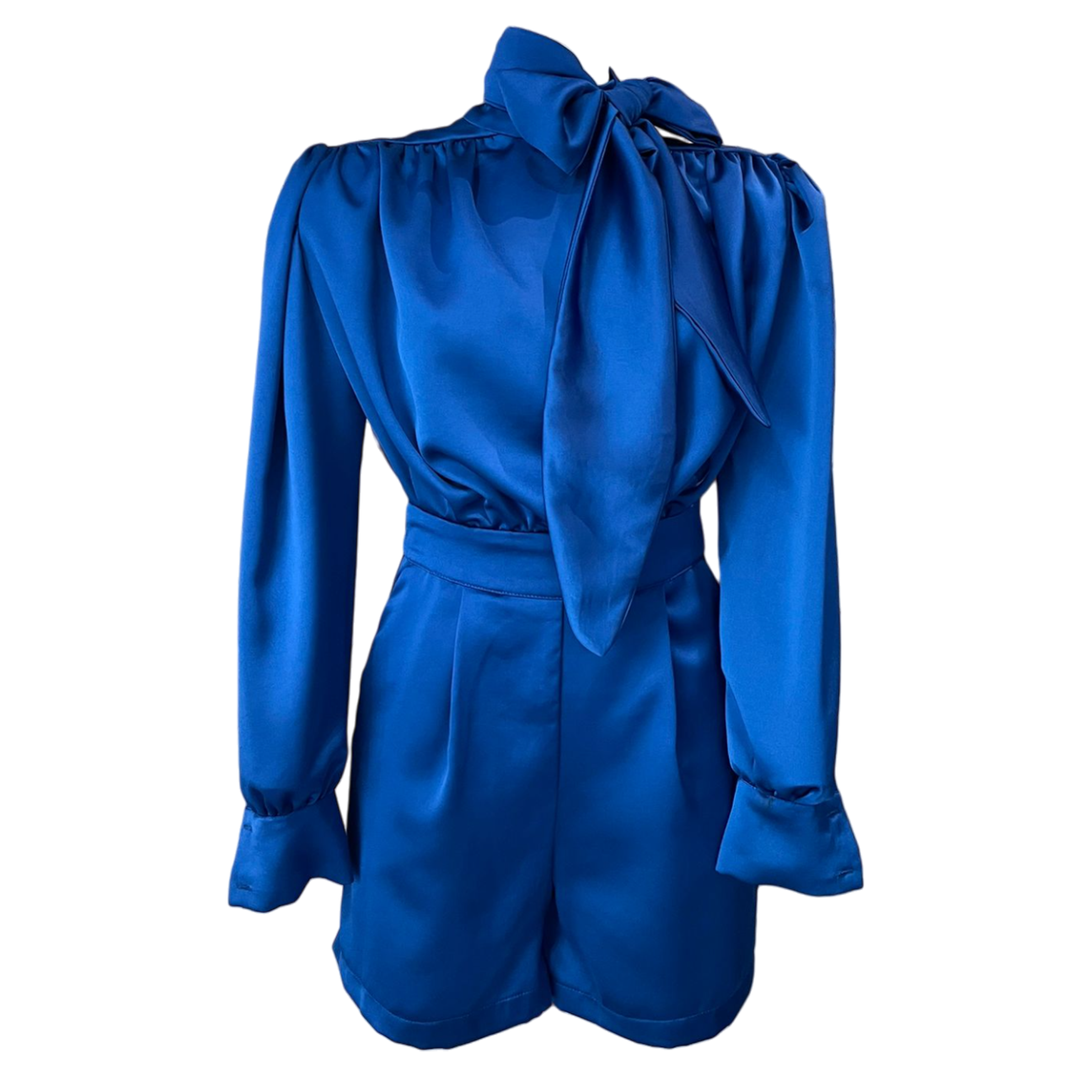 KASSIE FAYE TUTA con pantaloncino e maniche lunghe con elastico ai polsi. Caratterizzata da un collo con fiocco, apertura sulla schiena, chiusura con zip sul retro e una fascia in vita per esaltare la silhouette. Questa tuta è piena di funzionalità e ti farà sentire sicura ed elegante.